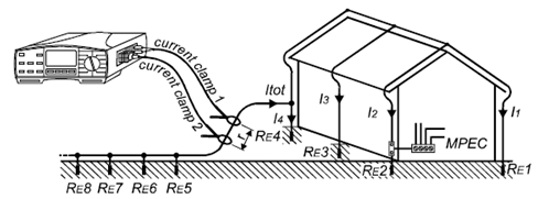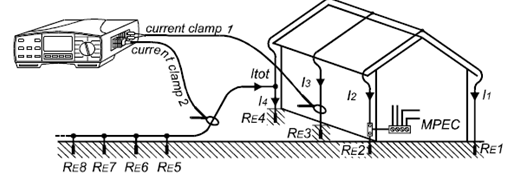 測(cè)量結(jié)果=(RE1-RE4接地系統(tǒng)總的接地電阻)+(RE5-REn輔助接地系統(tǒng)接地電阻)