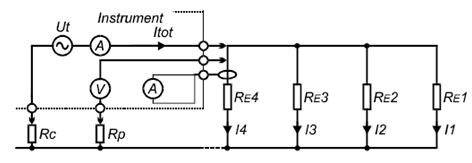 RE1-RE4為待測(cè)接地系統(tǒng)中單個(gè)的接地電阻